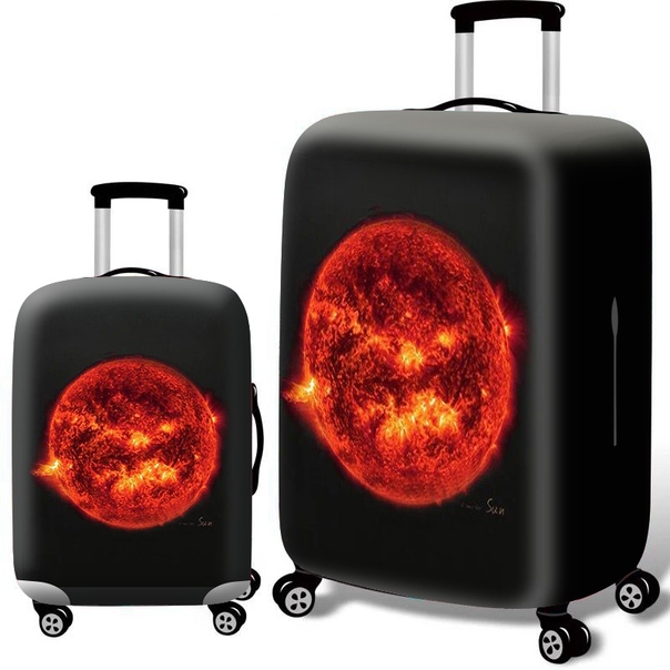 Черный защитный чехол для чемодана с огненной планетой