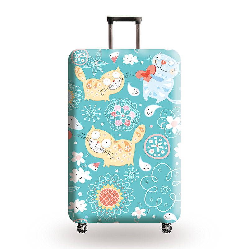 Голубой чехол для багажа с влюбленым котиком