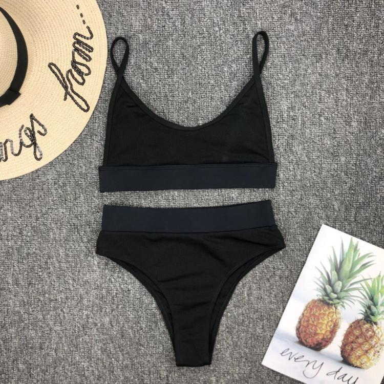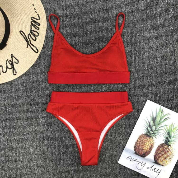 Простой однотонный купальник бикини с высокой талией