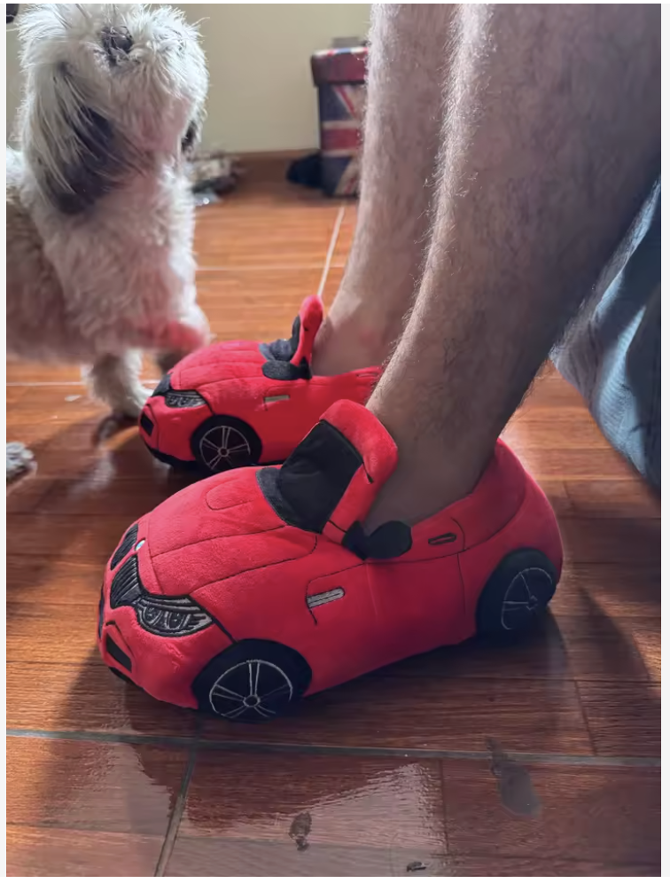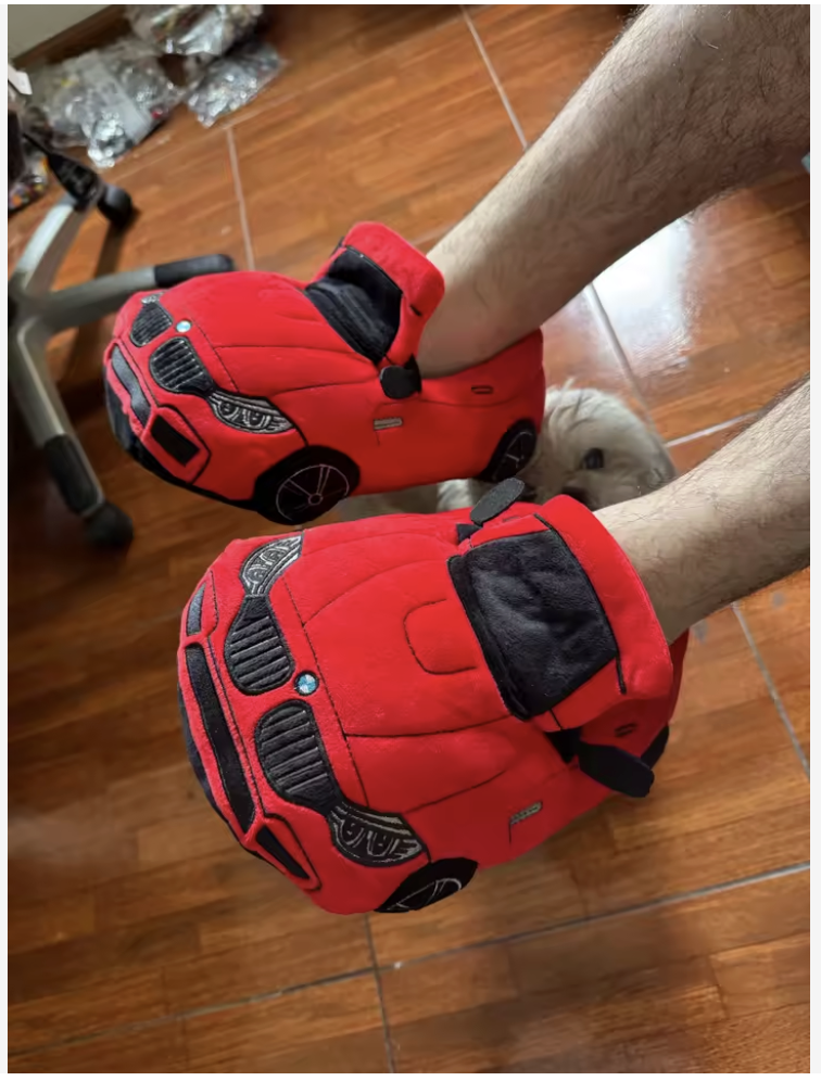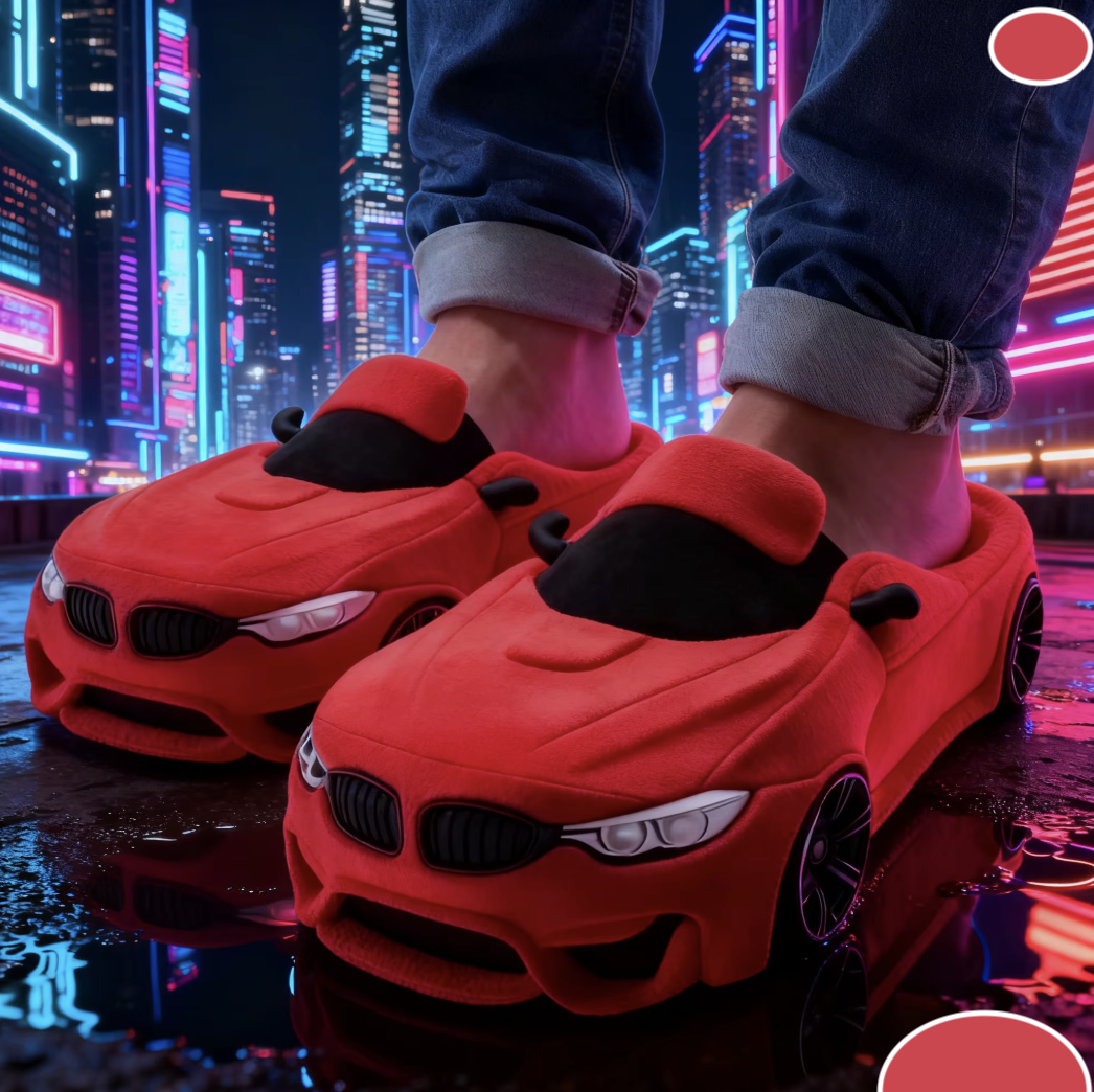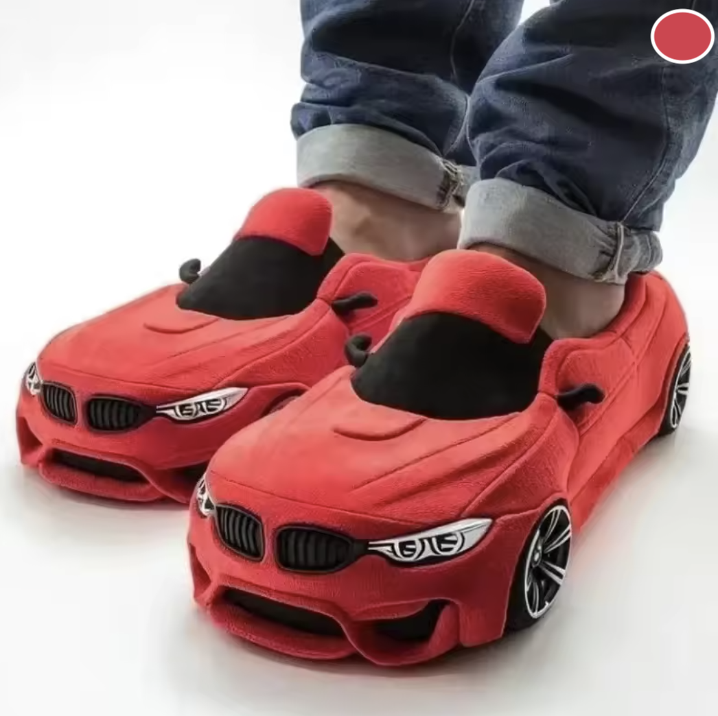 Мужские мягкие тапочки домашние в виде машины красная BMW