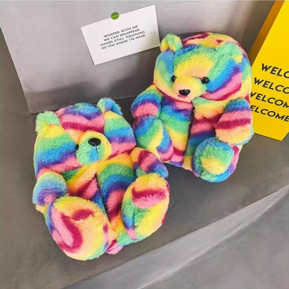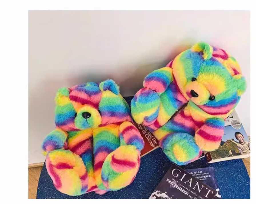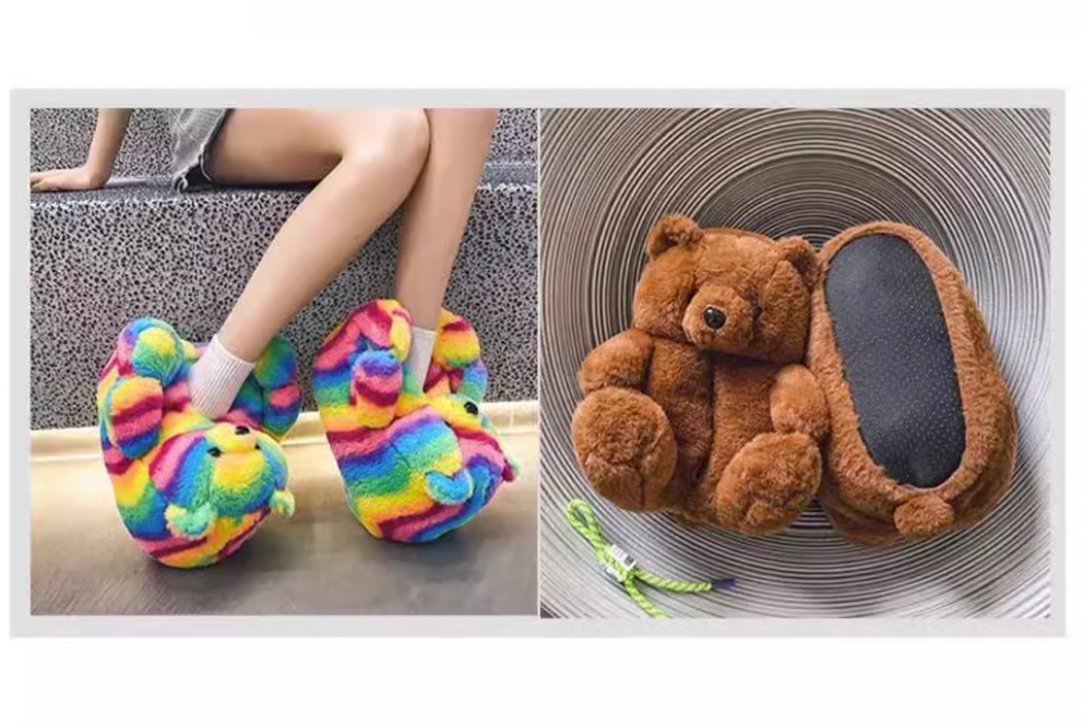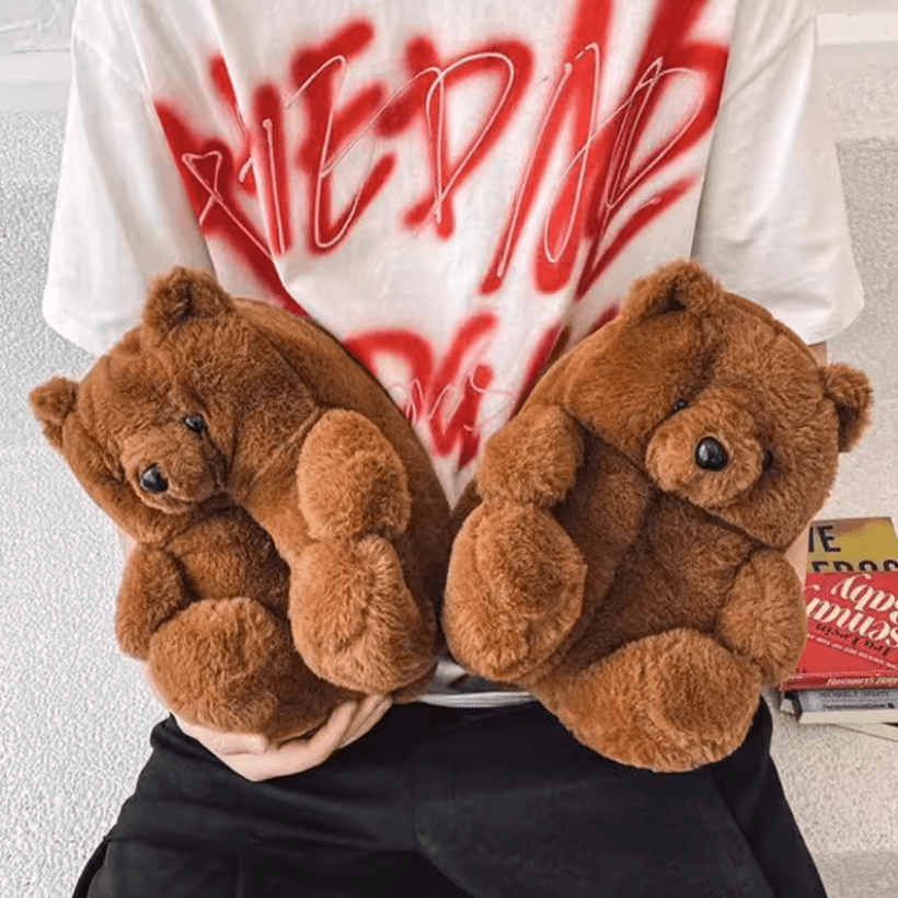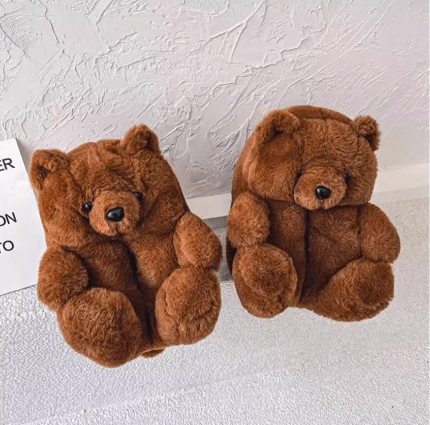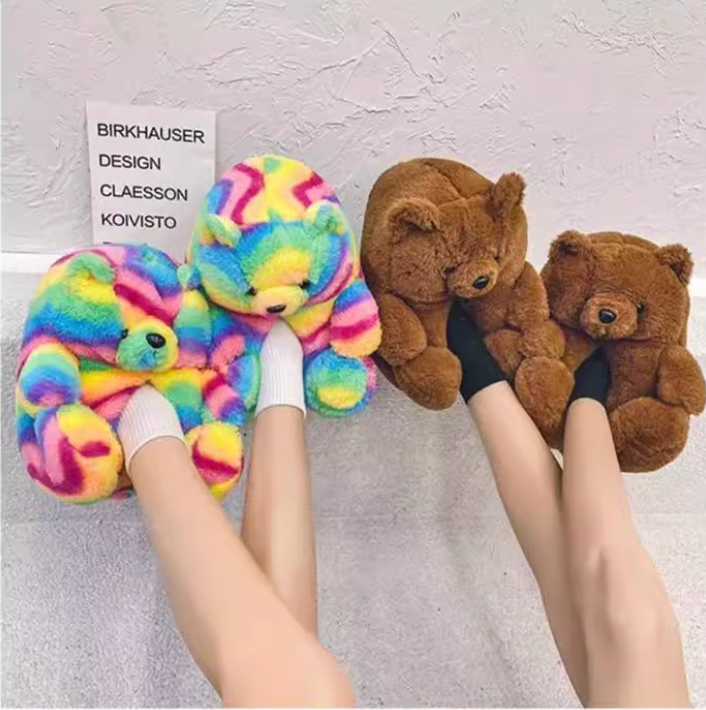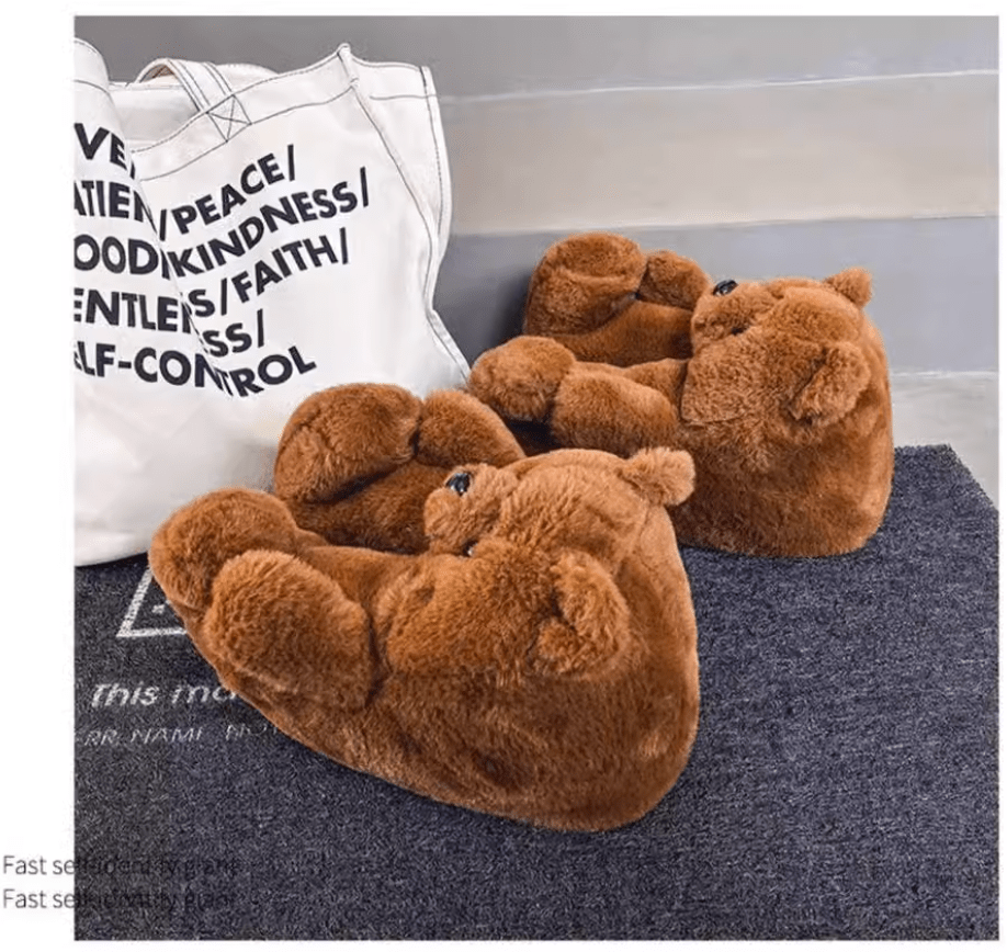 Огромные пышные теплые плюшевые тапочки в виде огромного мишки